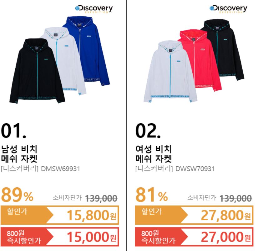 디스커버리 여름아이템 최대 89% 세일 정보 포스팅입니다.