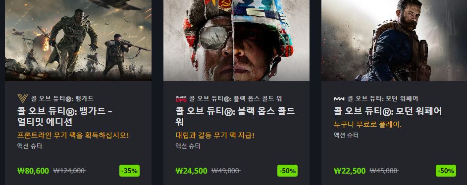 할인 품목 : 디아블로2 레저렉션, 콜오브듀티 시리즈 등