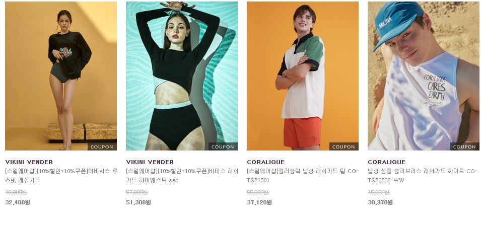 할인 품목 : 수영복, 래쉬가드, 슬리퍼, 모자 등