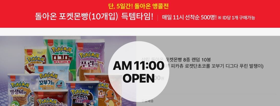 매일 오전 11시 포켓몬빵 선착순 판매