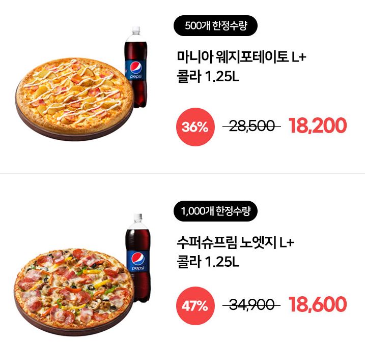 피자헛 다양한 메뉴를 할인 판매하네요.