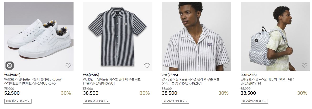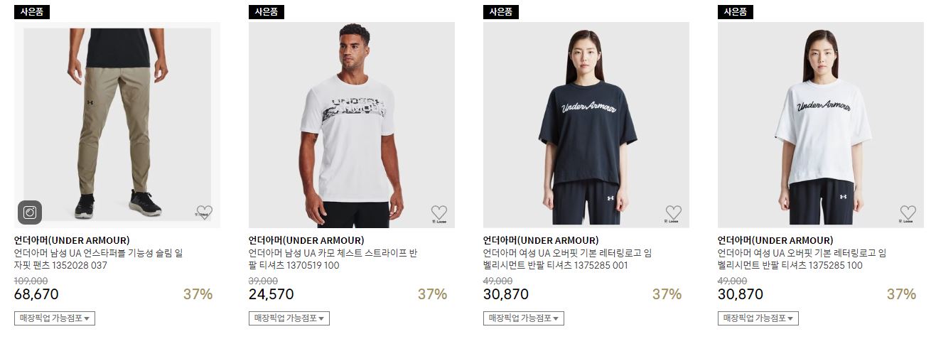 할인 품목 : 티셔츠, 운동화, 팬츠 등