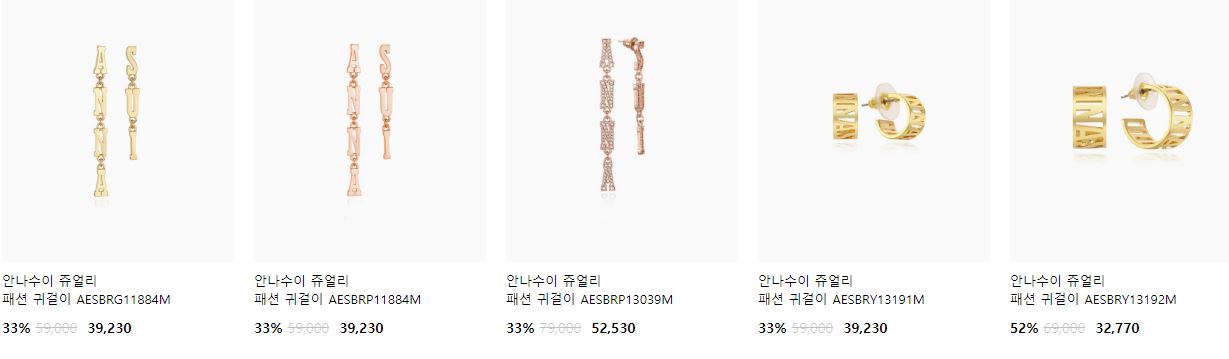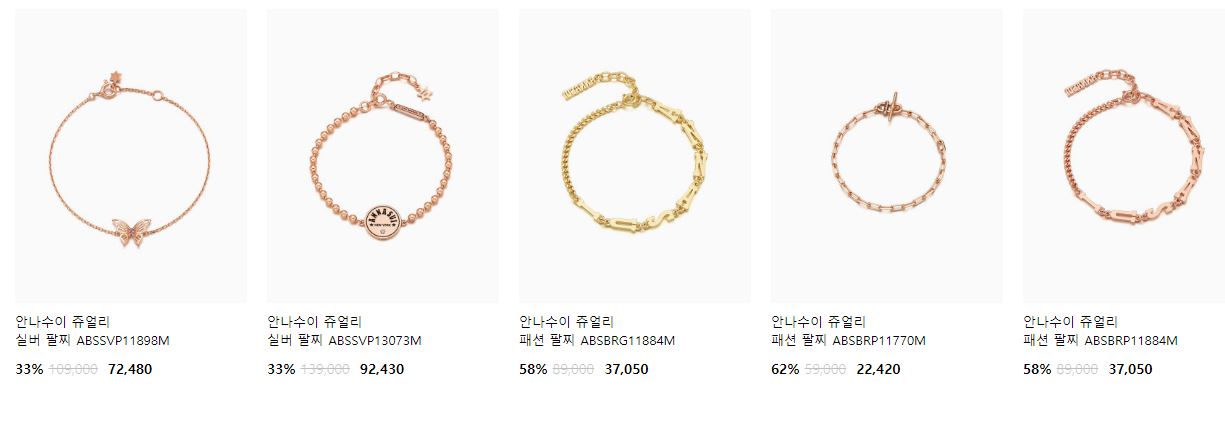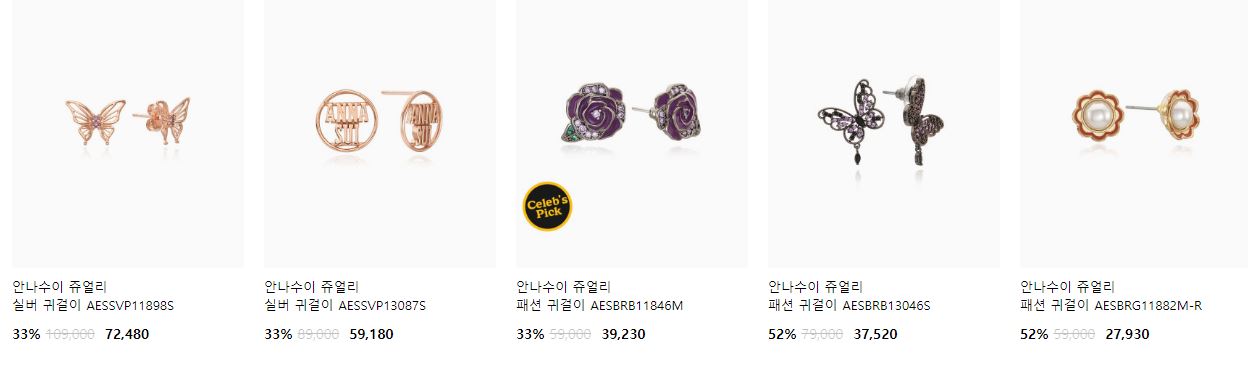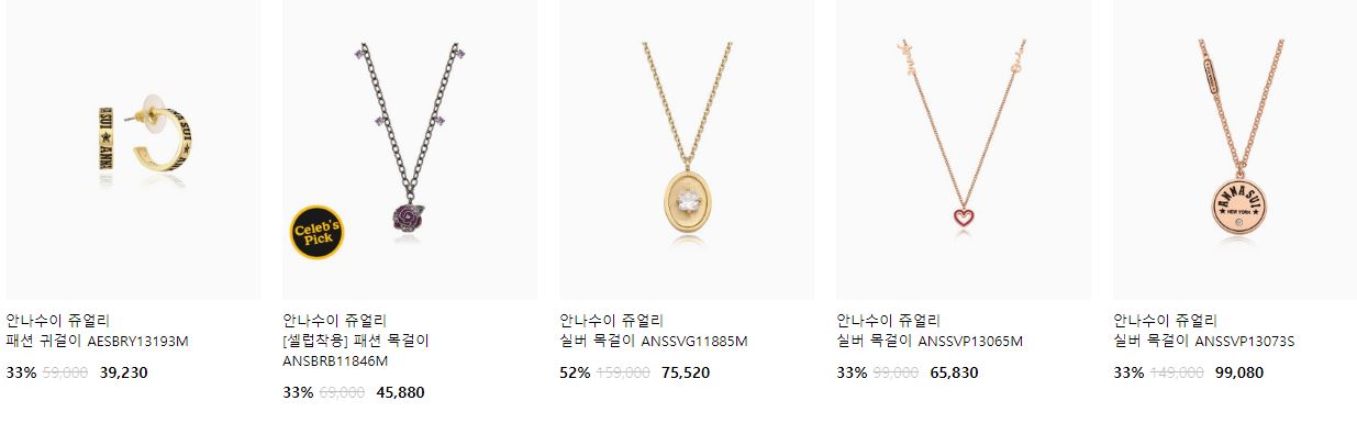 안나수이 쥬얼리 다양한 제품을 할인 판매하네요.