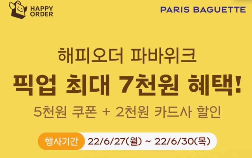 해피오더 파바위크 픽업 최대 7천원 할인 정보 포스팅입니다.