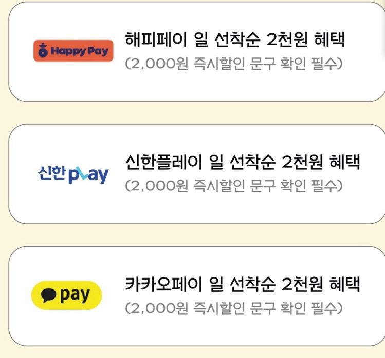 결제수단 선착순 2000원 할인 (매일 오전 10시 30분 시작)
