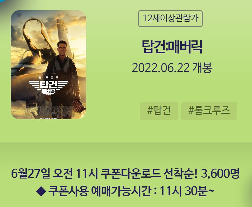 메가박스 사이트에서 탑건 매버릭 할인 이벤트를 진행하네요.