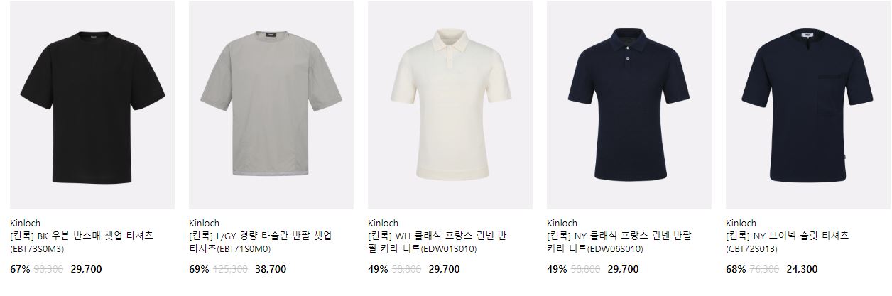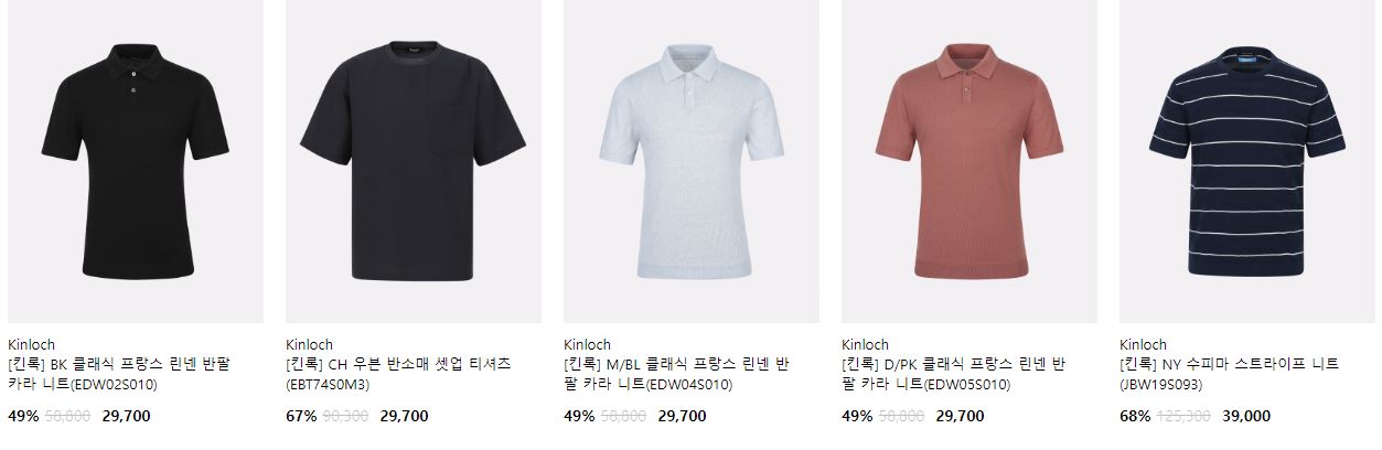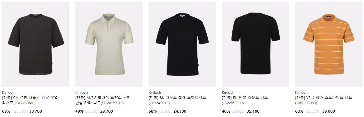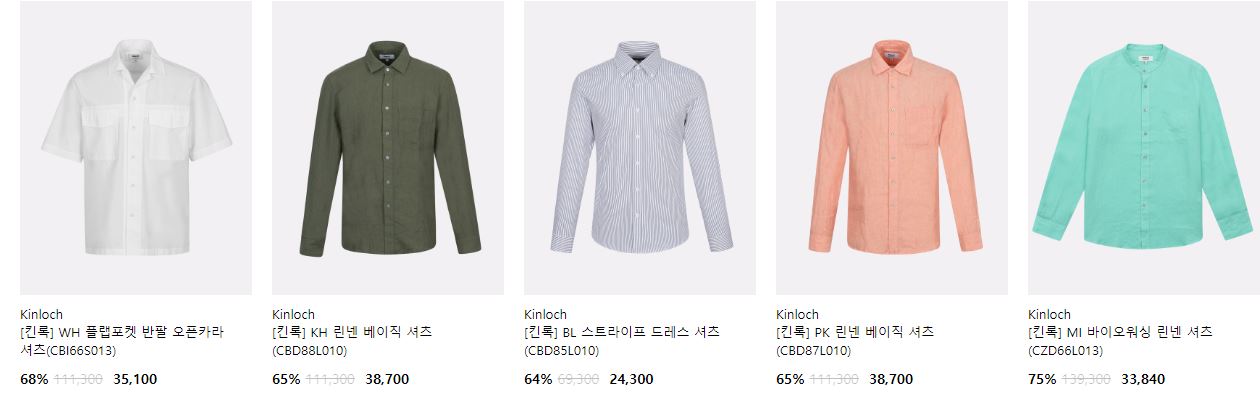 할인 품목 : 셔츠, 티셔츠, 팬츠 등