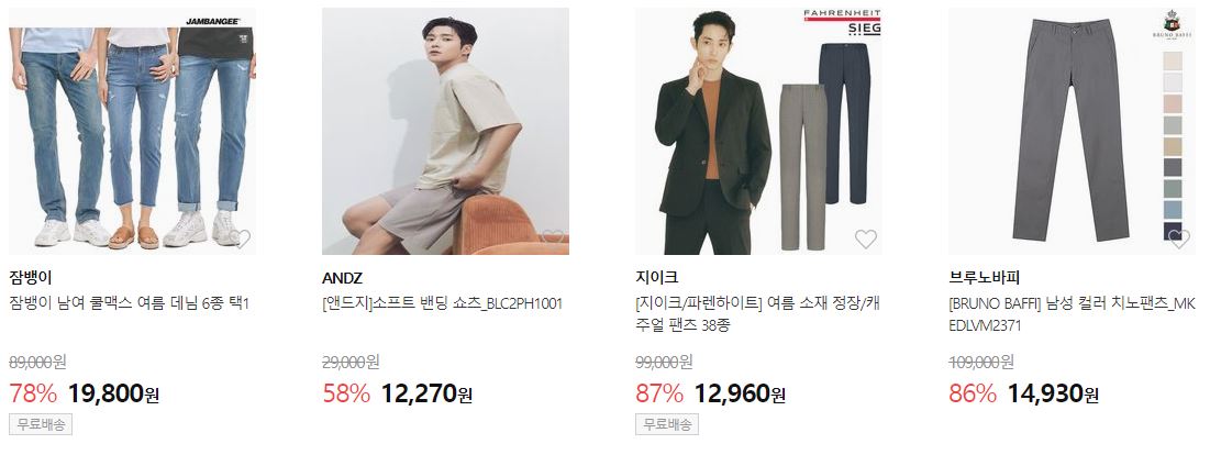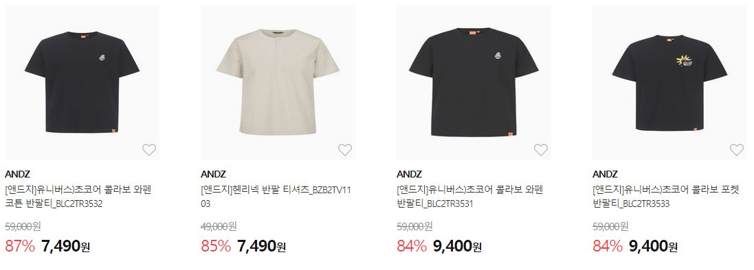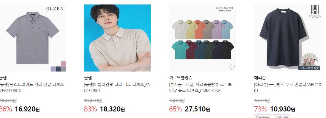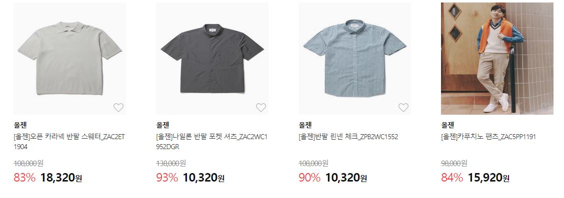 할인 품목 : 티셔츠, 자켓, 팬츠 등