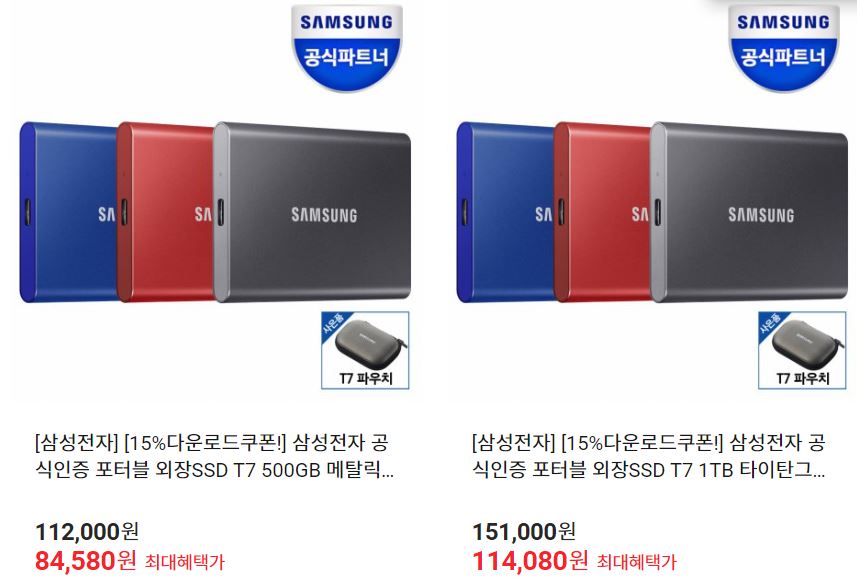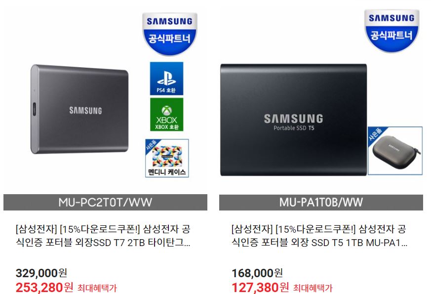 할인 품목 : 외장SSD T7, 980 등