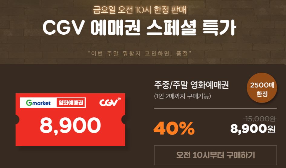 CGV 영화예매권을 할인 판매하네요.