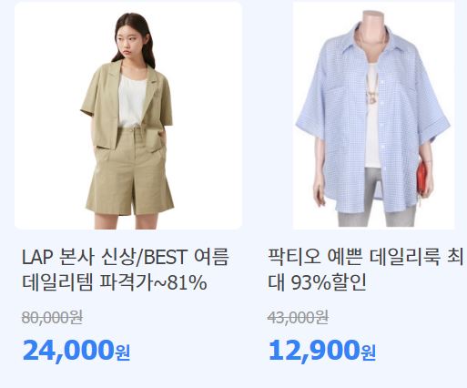 할인 품목 : 숙박권, 여행패키지, 의류 등