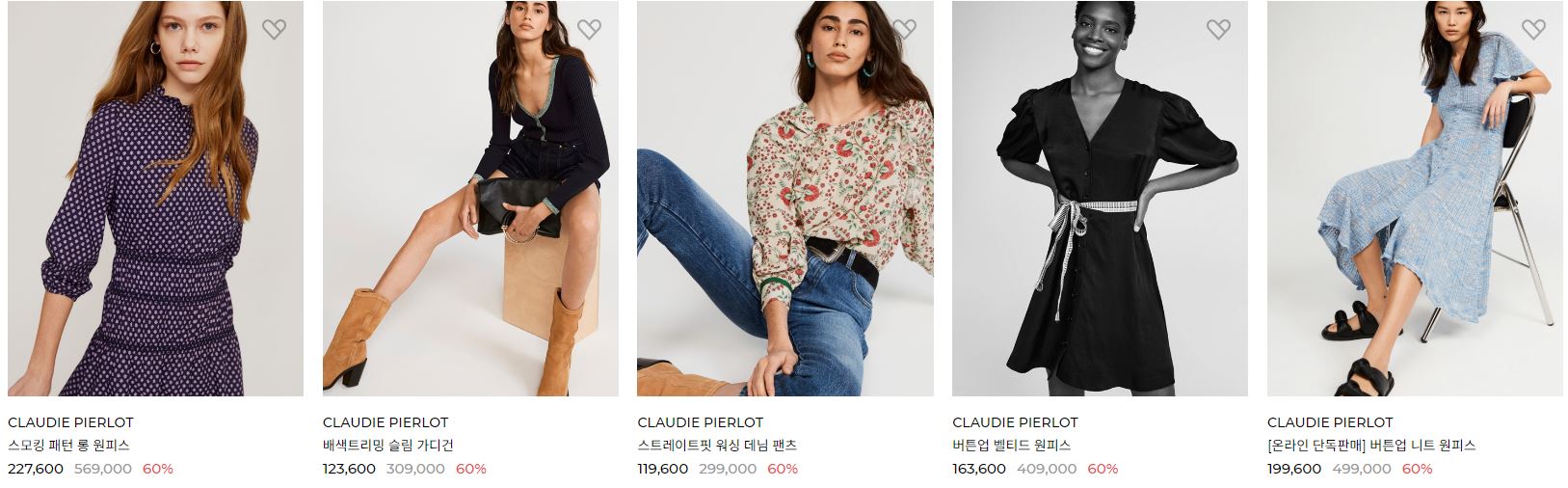 할인 품목 : 티셔츠, 원피스, 자켓 등
