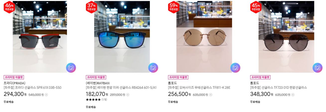 할인 품목 : 선글라스, 안경테
