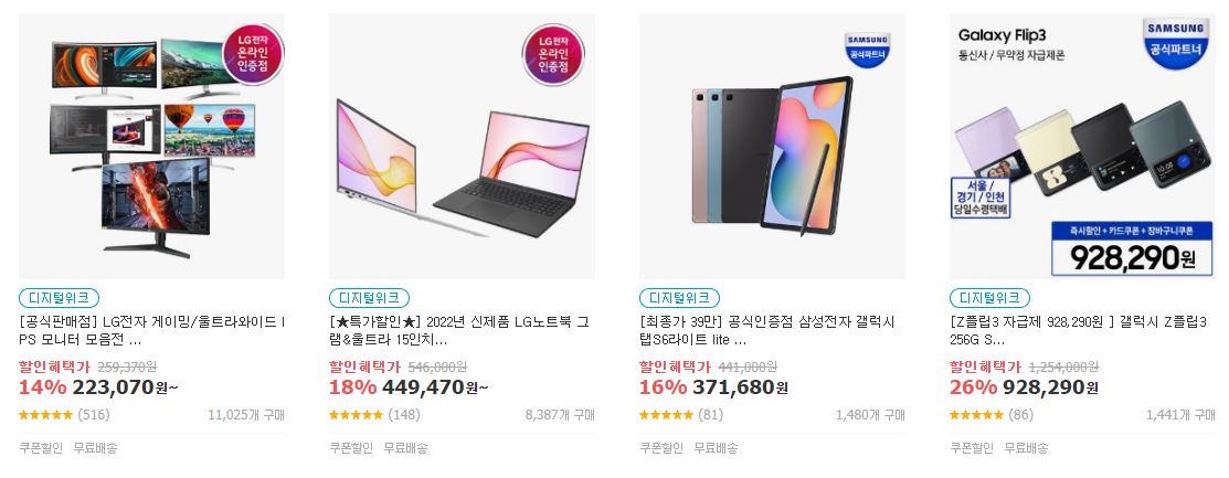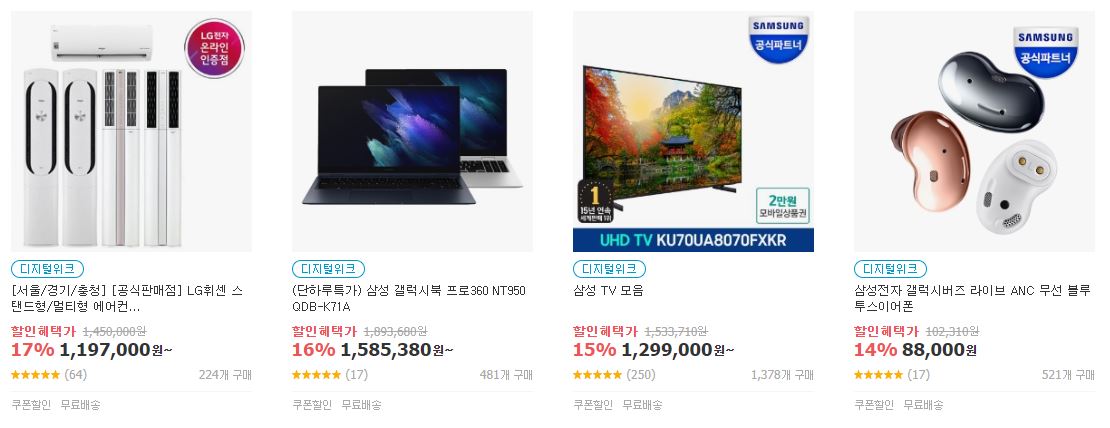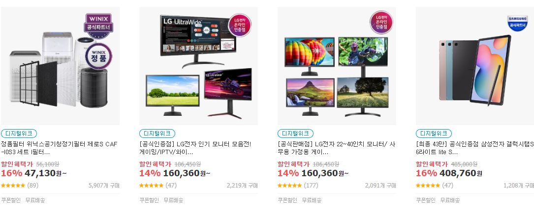 할인 품목 : 모니터, 휴대폰, 선풍기 등