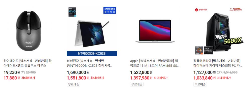 할인 품목 : 모니터, 컴퓨터, 휴대폰 등