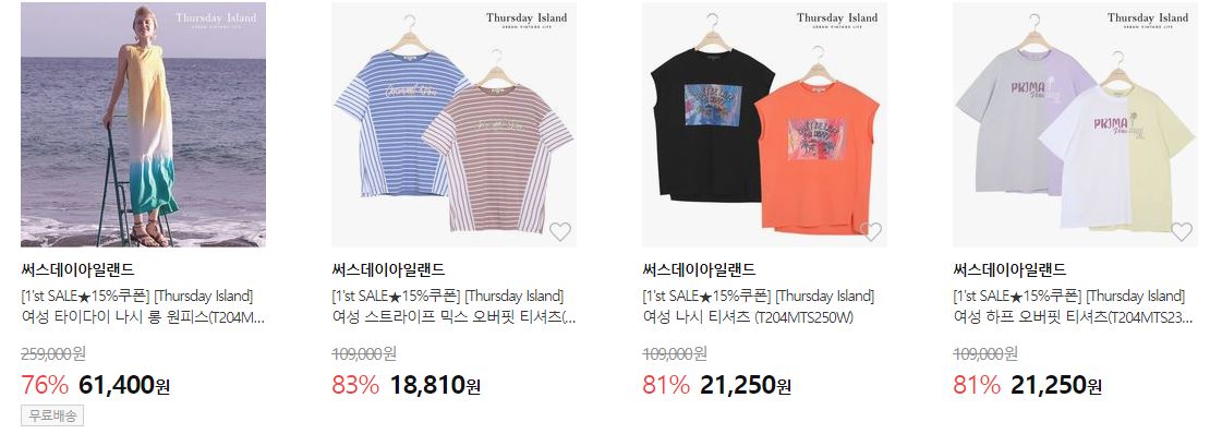 써스데이아일랜드 최대 85% 세일 정보 [링크]