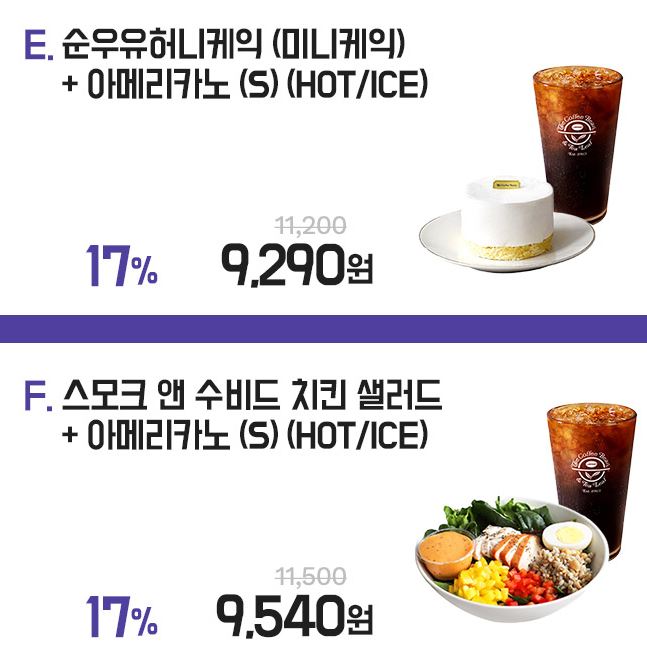 할인 품목 : 금액권, 시즌 메뉴