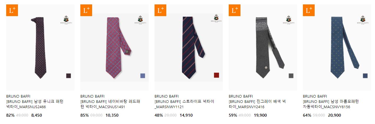 할인 품목 : 정장, 셔츠, 넥타이 등