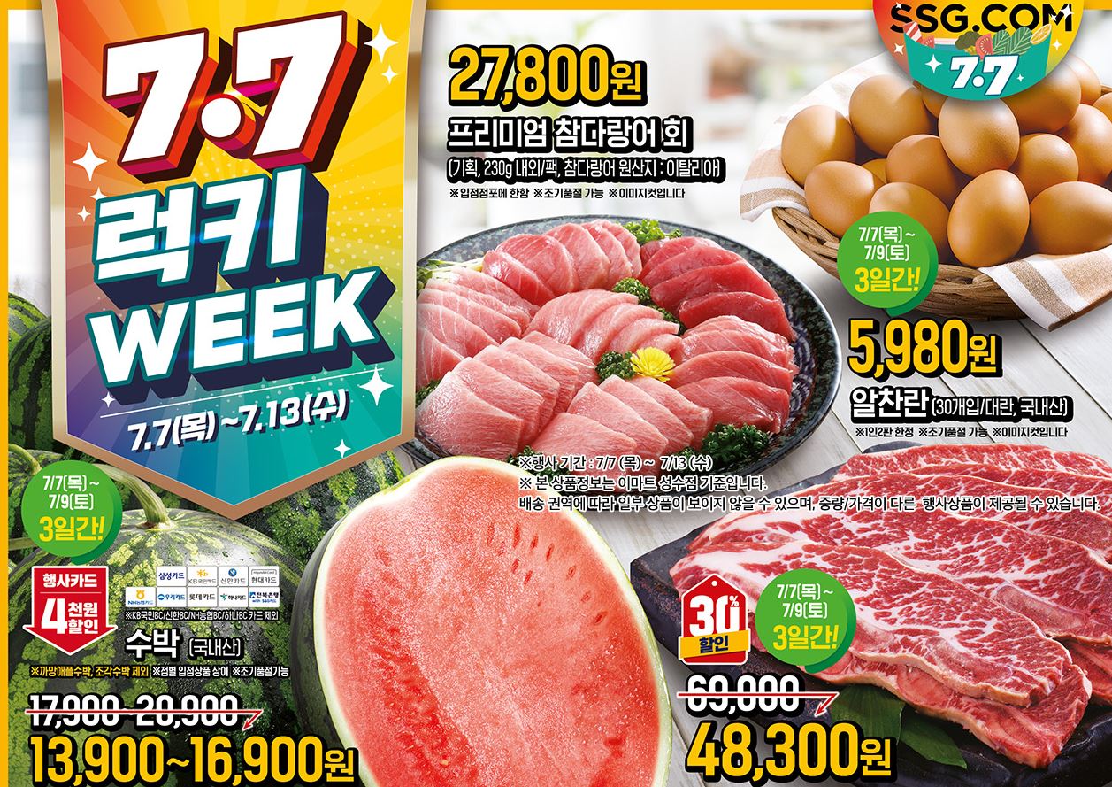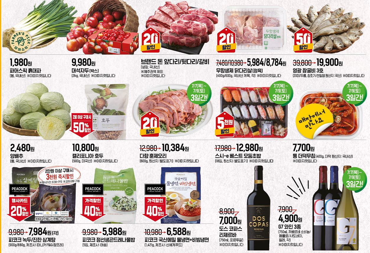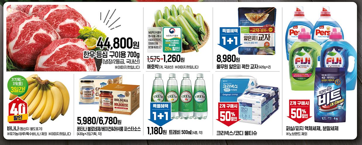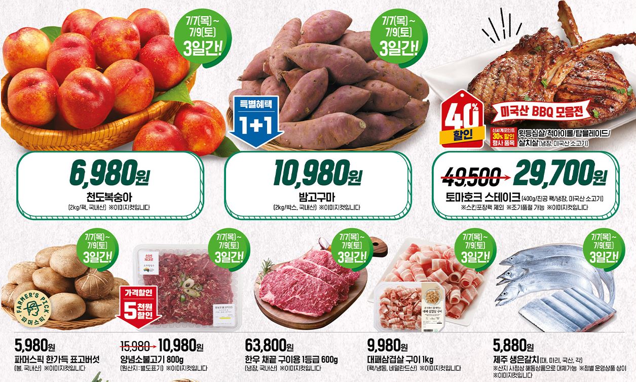 할인 품목 : 과일, 육류, 수산물 등