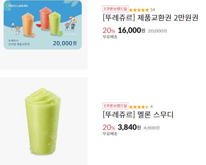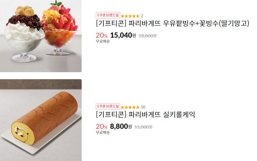 할인 브랜드 : 파리바게뜨, 파스쿠찌, 고피자 등