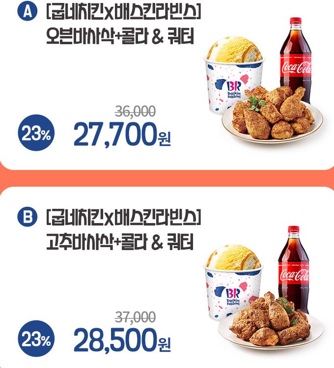 배스킨라빈스x굽네치킨 최대 23%할인 정보 포스팅입니다.