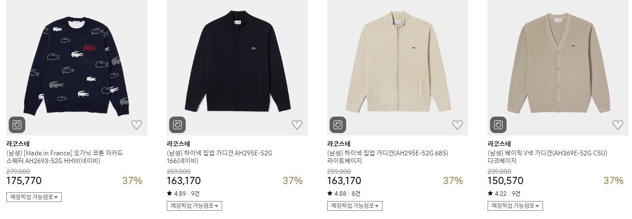 라코스테 다양한 제품을 할인 판매하네요.