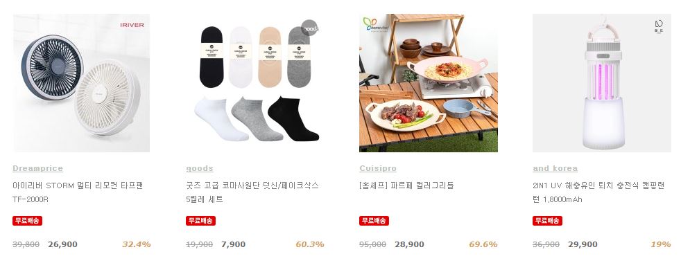 할인 품목 : 선풍기, 마스크, 텀블러 등