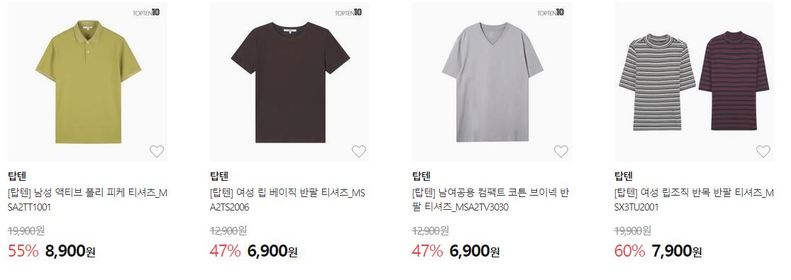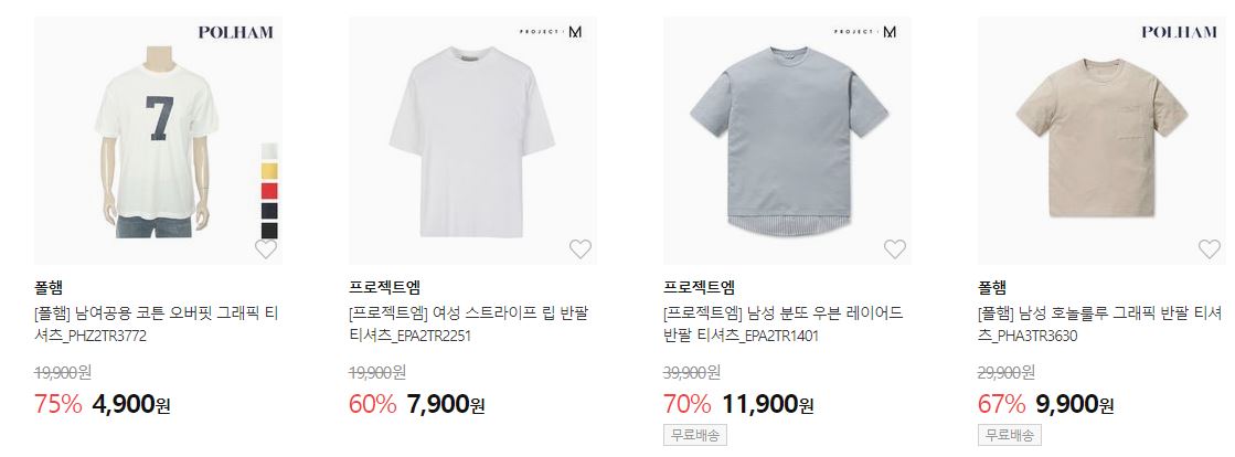 할인 품목 : 티셔츠, 팬츠 등