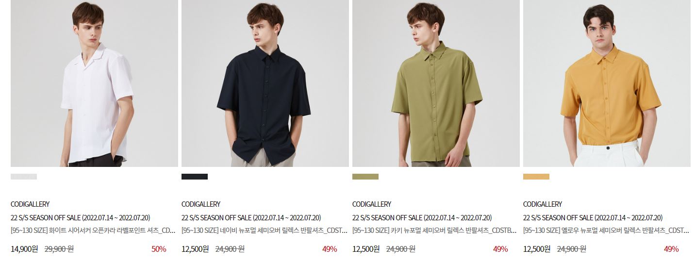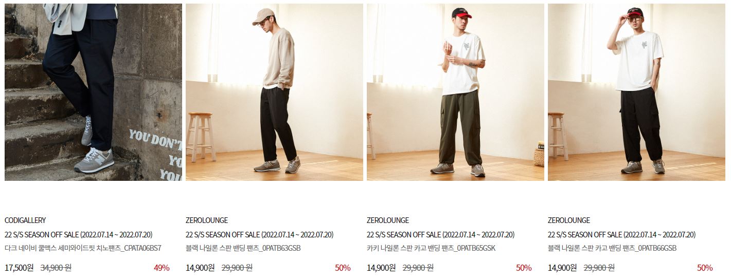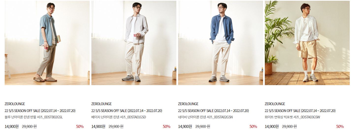 할인 품목 : 셔츠, 티셔츠, 팬츠 등