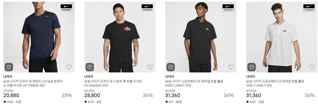 나이키 다양한 제품을 할인 판매하네요.