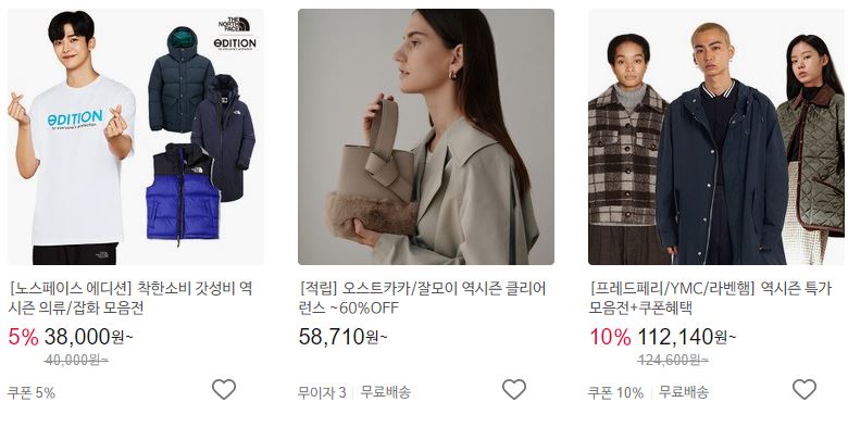 할인 품목 : 점퍼, 신발, 원피스, 가방 등