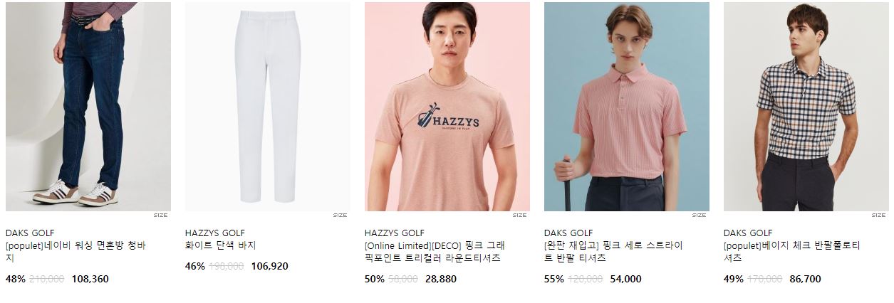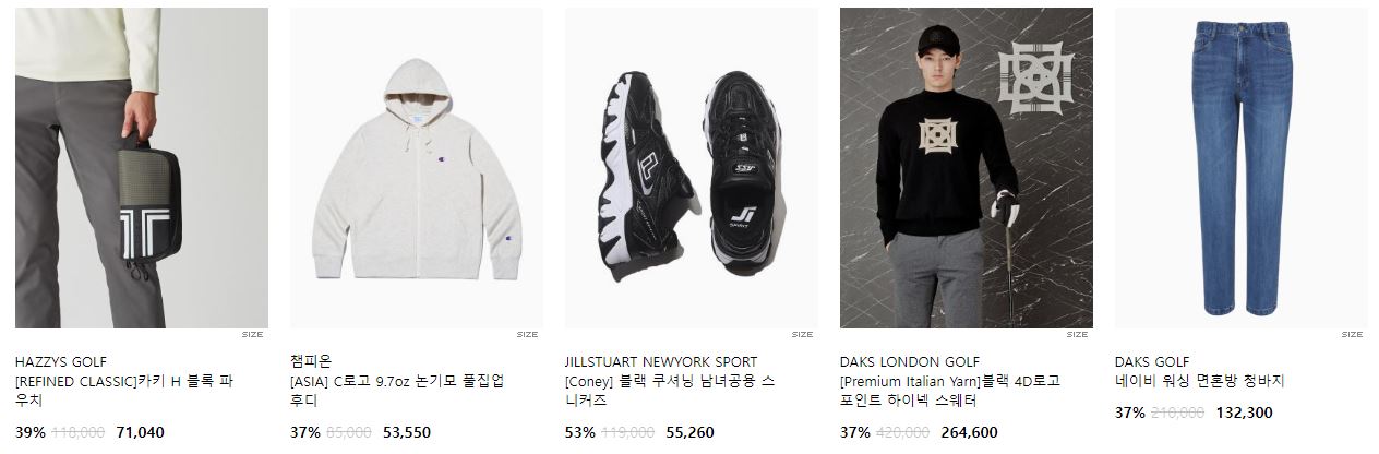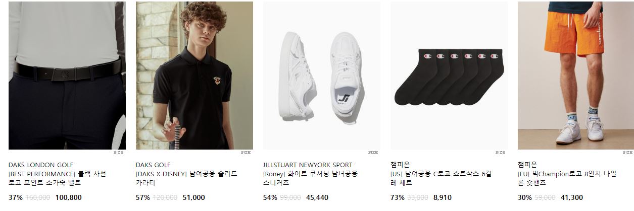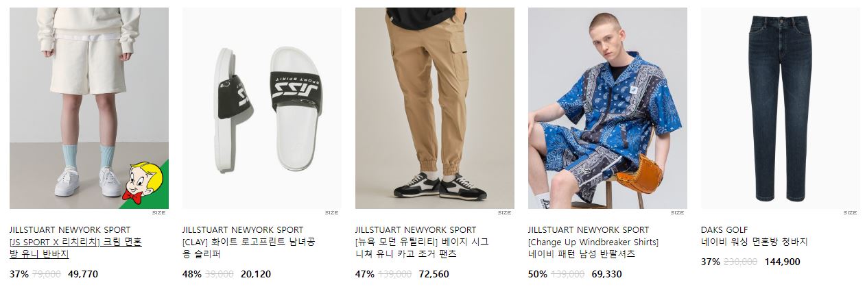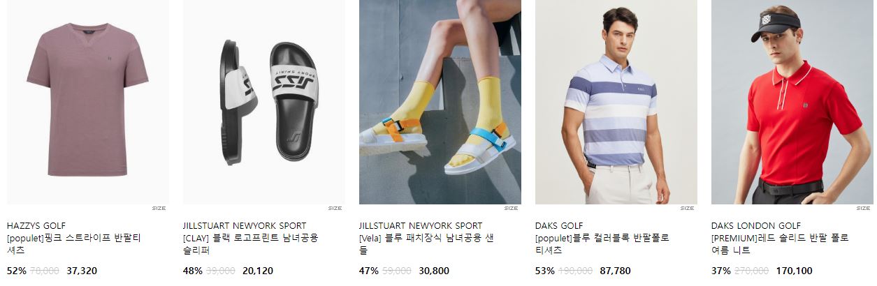 할인 품목 : 티셔츠, 팬츠, 운동화 등
