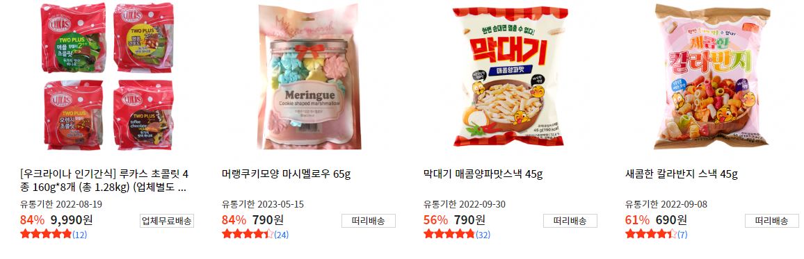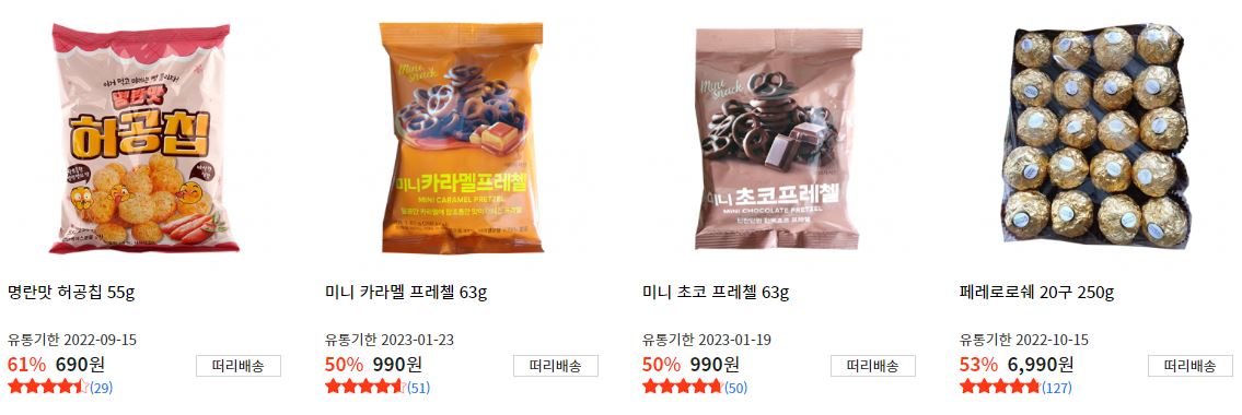 할인 품목 : 하리보, 초콜릿, 프레첼 등