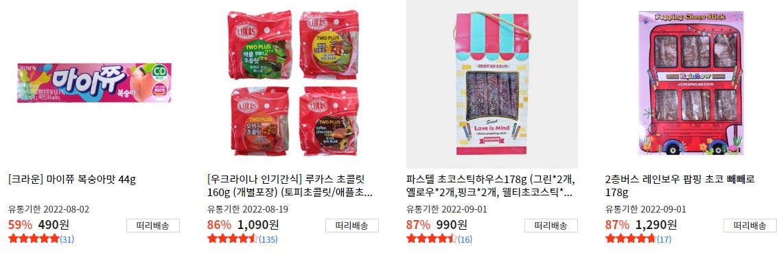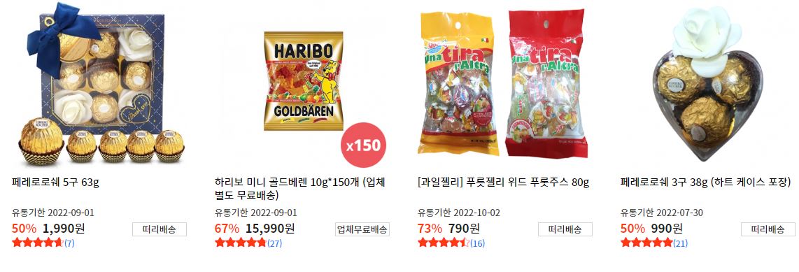 할인 품목 : 하리보, 초콜릿, 프레첼 등