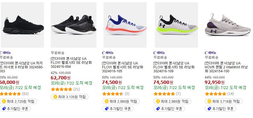 언더아머 다양한 제품을 할인 판매하네요.