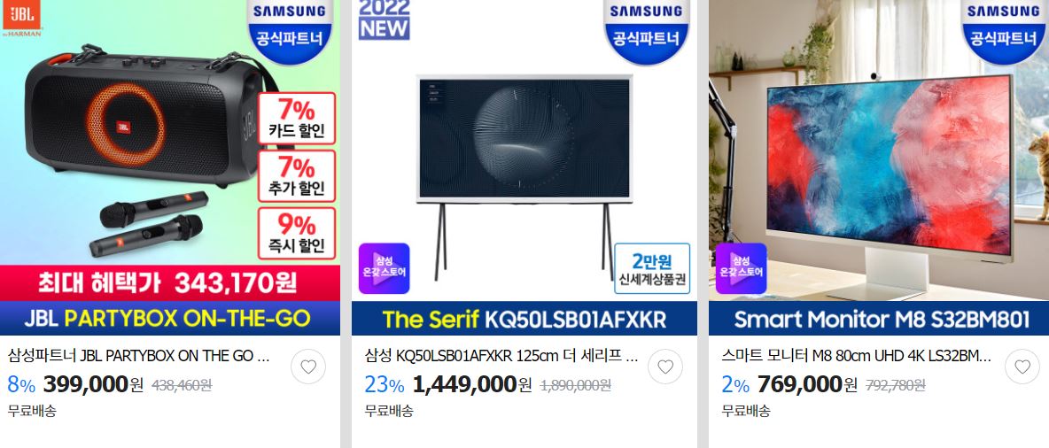 할인 품목 : 사운드바, 모니터, 티비 등