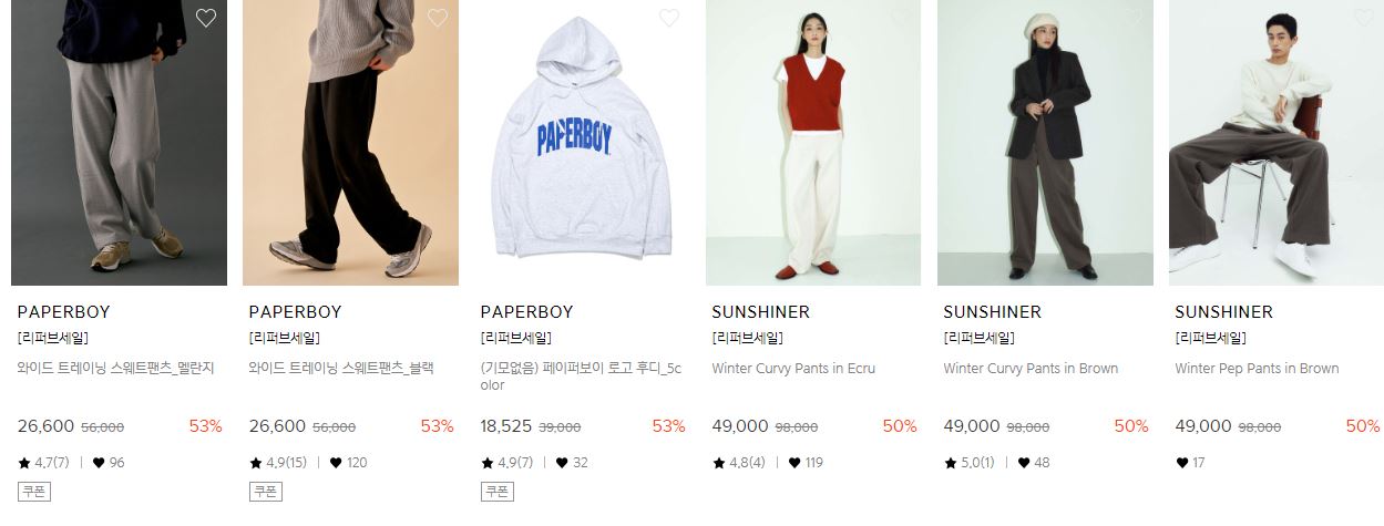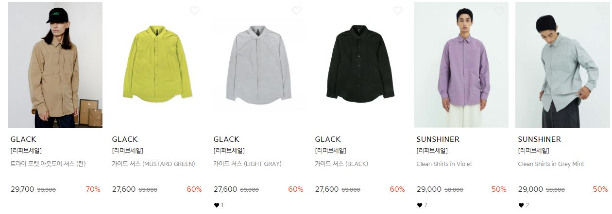 할인 품목 : 티셔츠, 운동화, 자켓 등