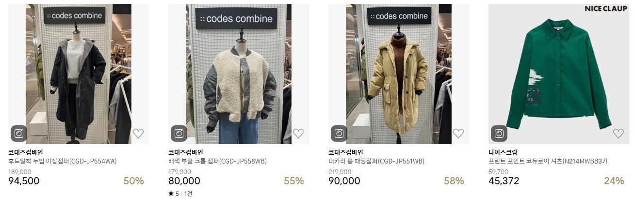 할인 품목 : 점퍼, 코트 등