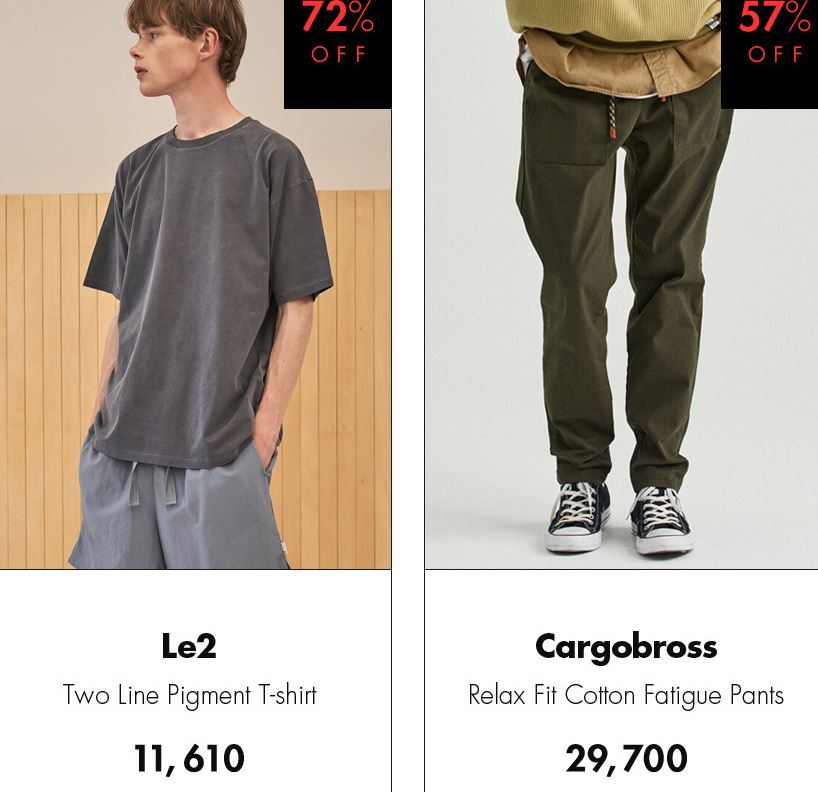할인 품목 : 의류, 신발, 가방 등