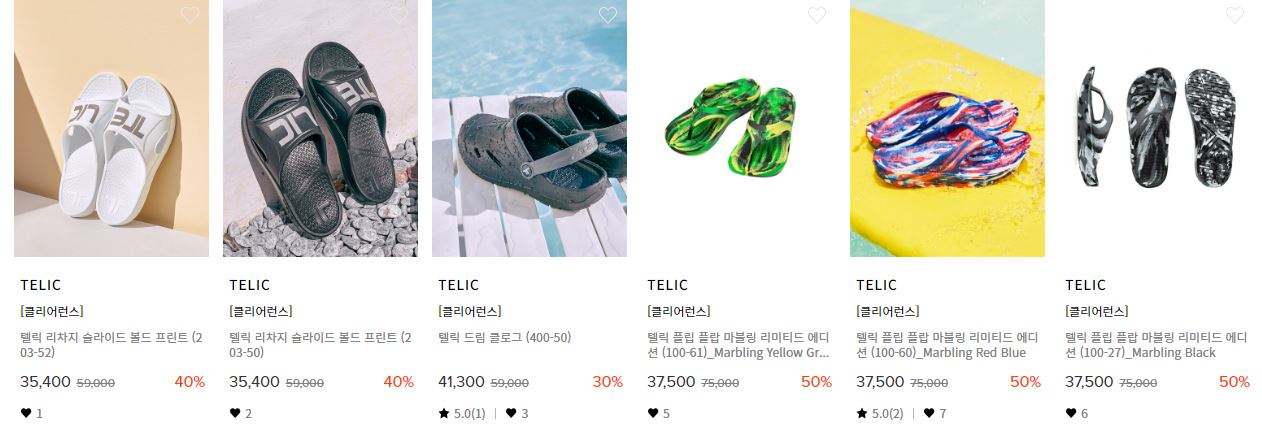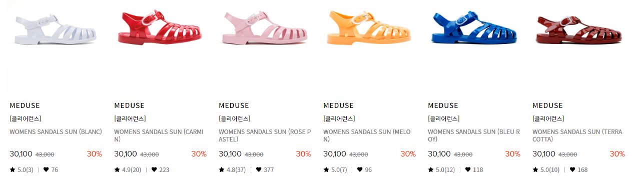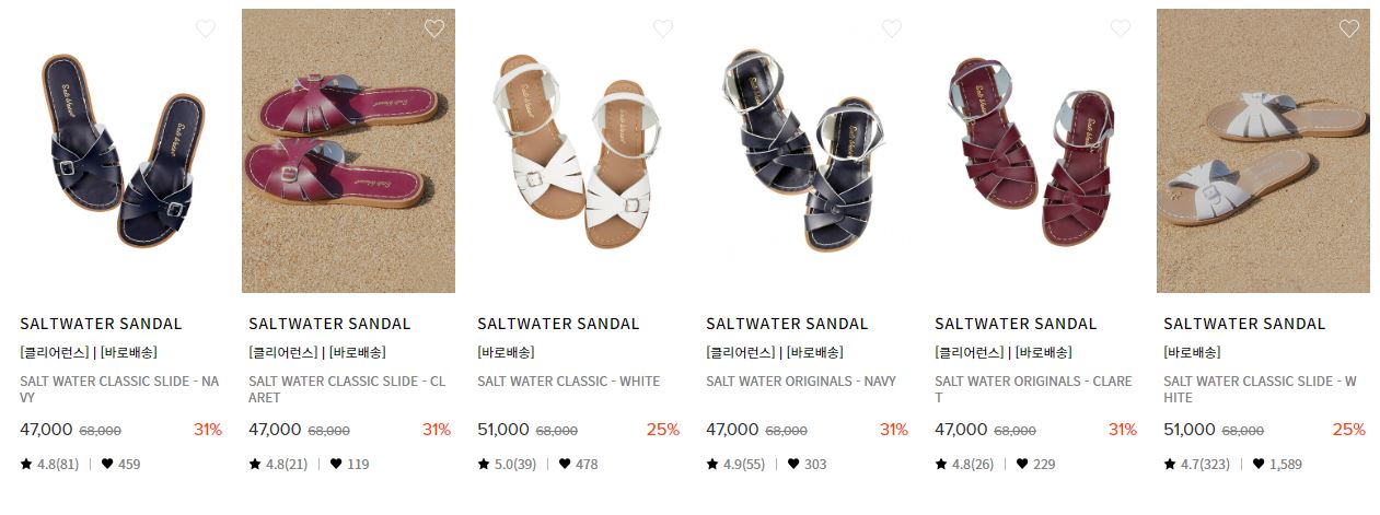할인 품목 : 샌들, 슬리퍼, 운동화 등