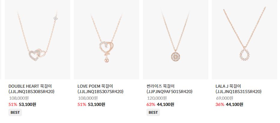 할인 품목 : 목걸이, 귀걸이, 팔찌 등
