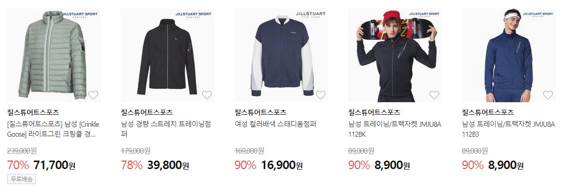 할인 품목 : 티셔츠, 레깅스, 자켓 등
