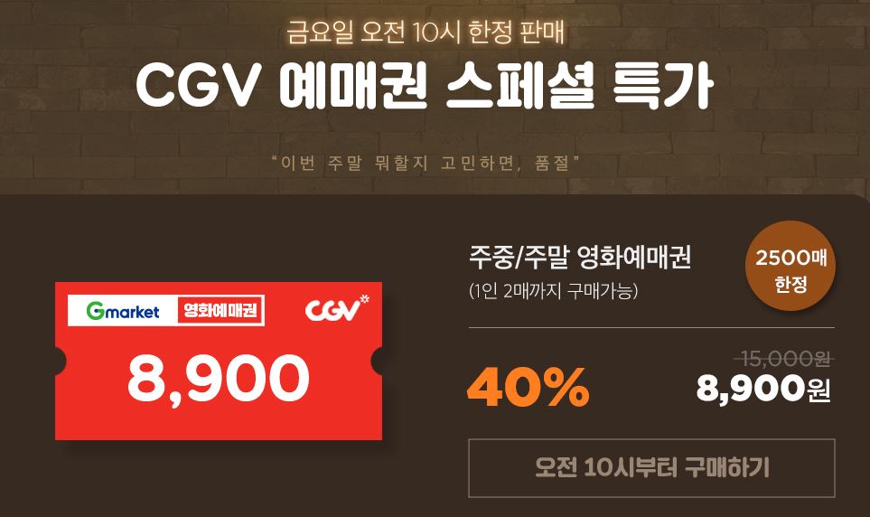 CGV 영화예매권 40% 할인 정보 포스팅입니다.
