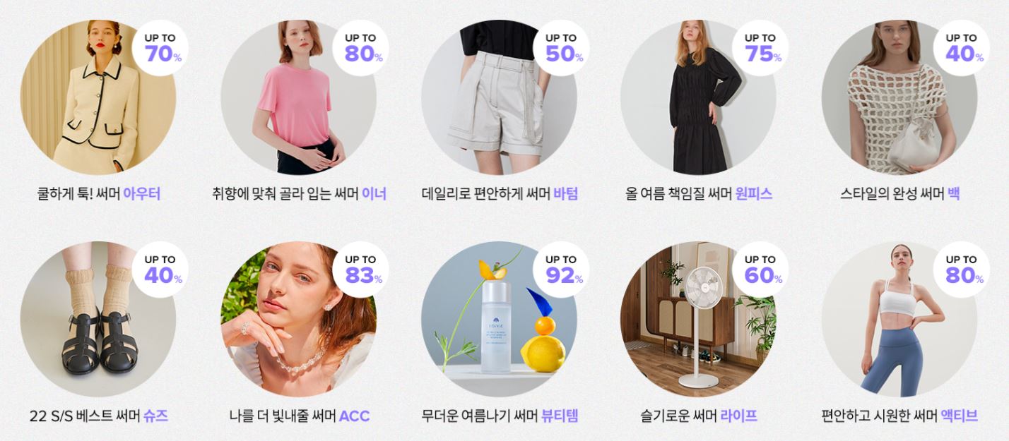 할인 품목 : 의류, 신발, 화장품 등