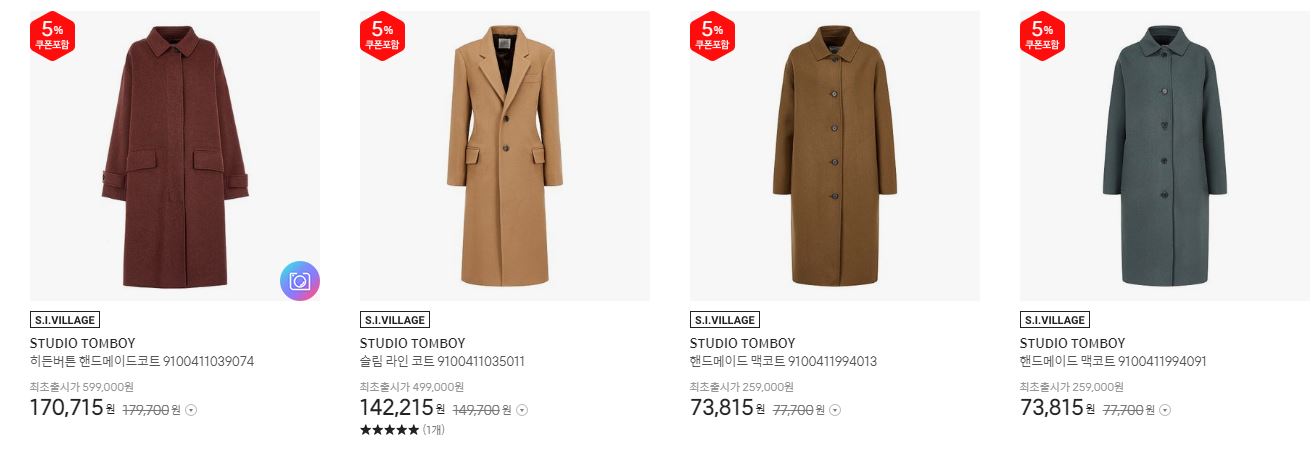 할인 품목 : 코트, 니트, 원피스, 티셔츠 등