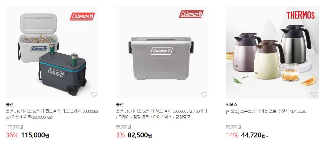 할인 품목 : 아이스박스, 파라솔, 래쉬가드 등