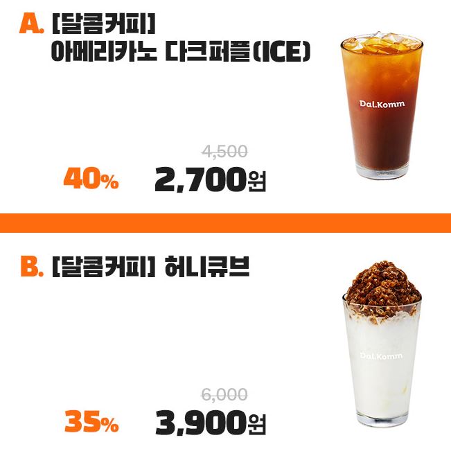 달콤커피 시그니처 메뉴 최대 40% 할인