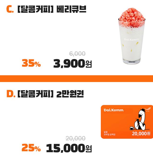 달콤커피 시그니처 메뉴 최대 40% 할인 정보 포스팅입니다.