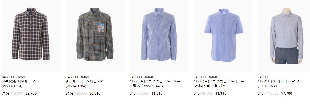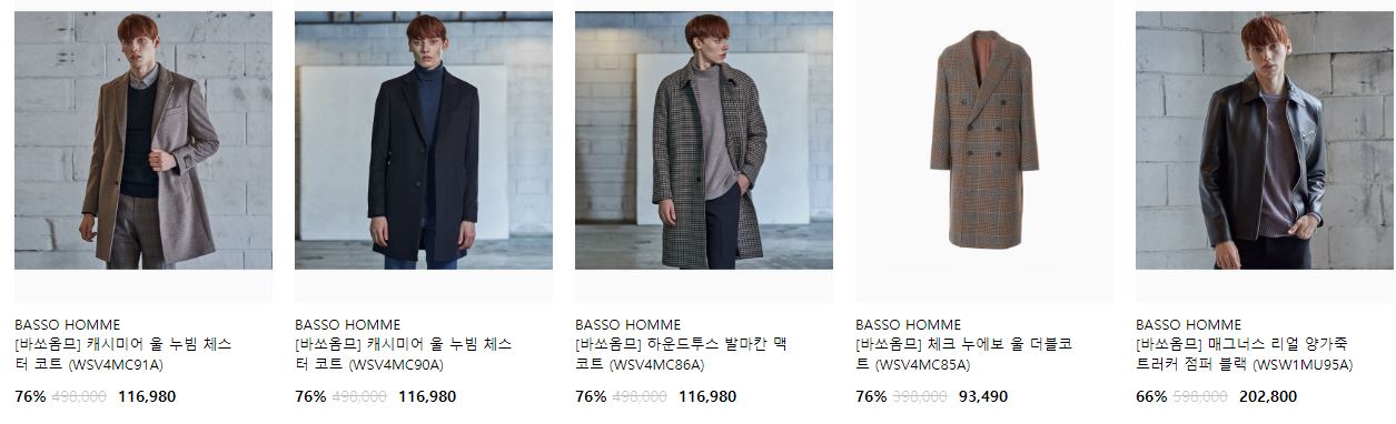 할인 품목 : 자켓, 티셔츠, 코트 등