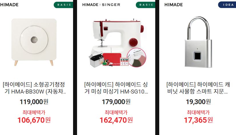 하이메이드 다양한 제품을 할인 판매하네요.